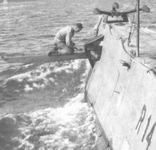 I had the experience of recovering a MK 14-3 steam torpedo while on the Cusk in 1961. same scenario, bow planes rigged out man on the port bow plane dropping the tail line (chain loop attached to line) over the nose, then the wire hoisting sling dropped over the nose, then the nose line attached to the exercise head nose ring. No hard hats, life jackets, gloves, or safety harness and lines. On the flip side fleet-snorkel boats retained the fleet boat bow and broad superstructure deck providing a large flat working area by todays standards. Sea was allso flat calm and we were at All Stop with the torpedo floating vertically alongside. There are pics on the internet of submarine torpedo recover at sea. Check'em out.